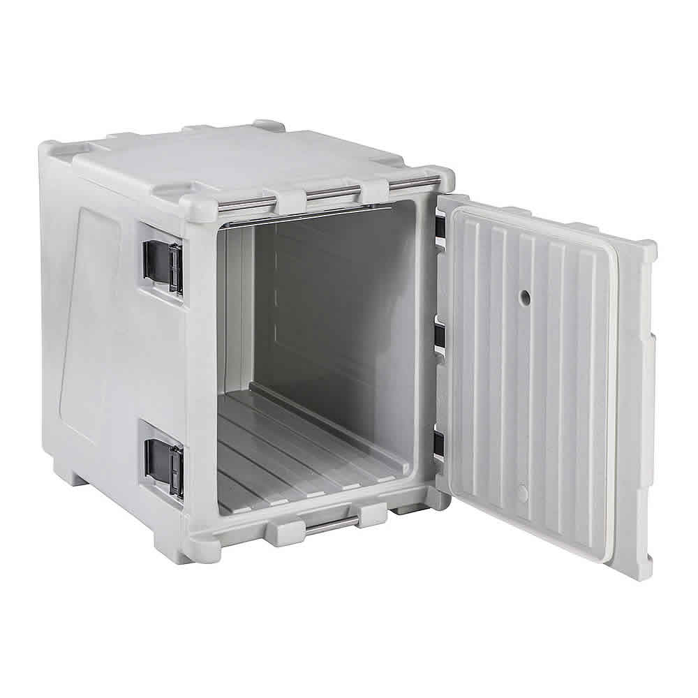Manufactured using the rotational moulding technology: mono-block container and door (free of sharp edges, joints and welds).